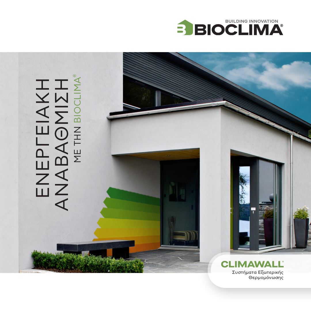 Η ολοκληρωμένη οικογένεια συστημάτων ενεργειακής αναβάθμισης BIOCLIMA® σχεδιάστηκε με γνώμονα την ελληνική πραγματικότητα που είναι πλούσια σε μικροκλίματα και αρχιτεκτονική παράδοση. Με δύο ολοκληρωμένα συστήματα ενεργειακής αναβάθμισης για τοίχους και ταράτσες, αποτελούν κομμάτι μιας νέας ανθρωποκεντρικής και περιβαλλοντικής αρχιτεκτονικής κουλτούρας που συμβάλλει στην εξοικονόμηση χρημάτων και ταυτόχρονα στην προστασία του περιβάλλοντος, κυρίως μέσω της μείωσης των εκπομπών CO2 λόγω μειωμένης απαίτησης χρήσης μονάδων θέρμανσης / ψύξης.